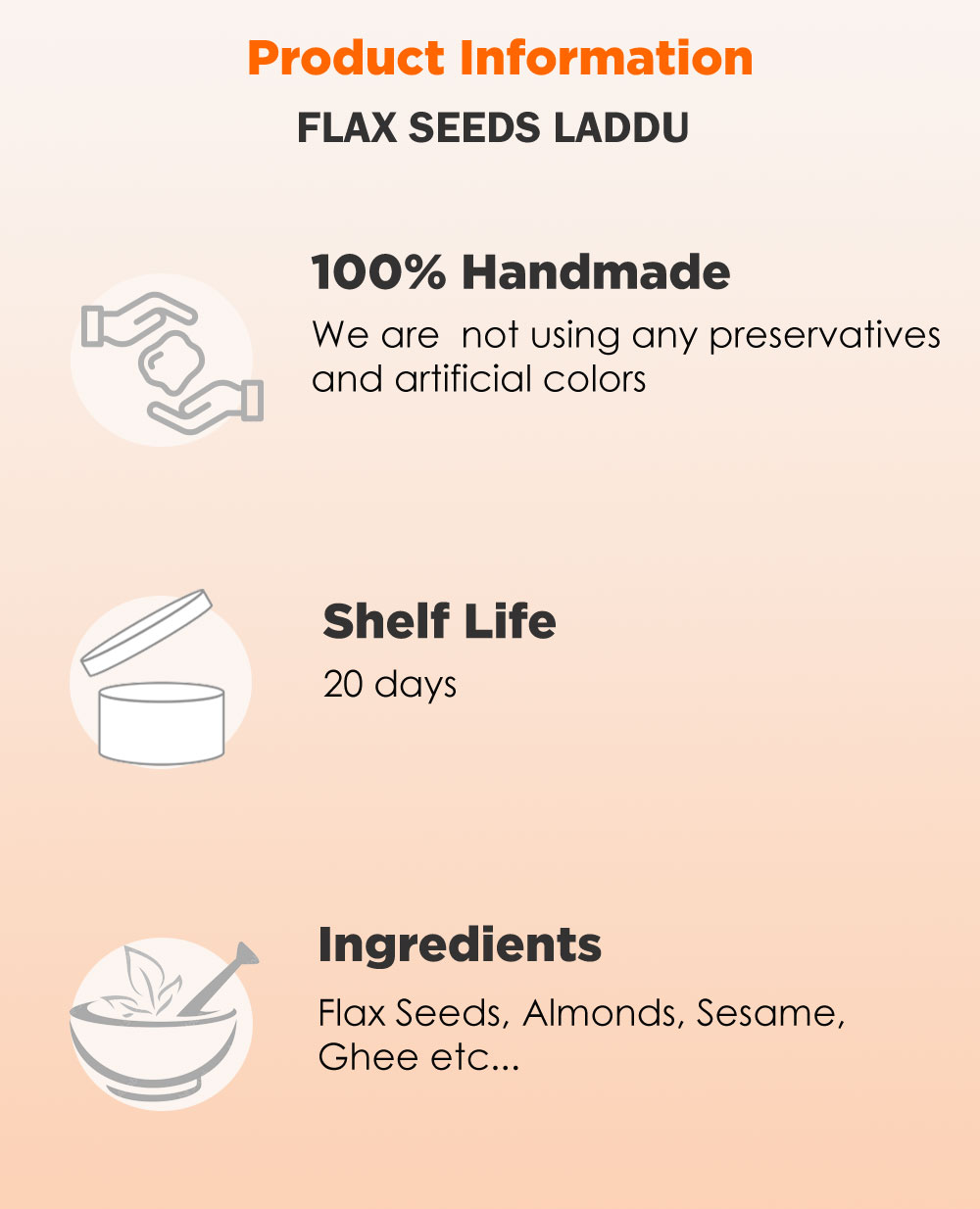 Flax Seeds Laddu / Alsi Laddu is a healthy food made with Flax Seeds and Dates. Our Flax Seeds Laddu Online offers a perfect balance of traditional taste and modern nutrition. Flax seeds Laddu are a good source of plant proteins, fiber, antioxidants, has inflammatory properties and many other health benefits. Flax seeds are known as a powerhouse of Omega-3 fatty acids, dietary fiber, plant-based protein, and essential antioxidants. Our Flax Seeds Laddus are made using pure ingredients like jaggery, desi ghee, and premium flax seeds, ensuring you get maximum health benefits in every bite. This Flax Seeds will help in hair growth. Store them and have them, whenever you wish to. These Ladoo’s also stay good for a couple of weeks, in air-tight containers or boxes.
